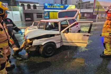 Equipes do Corpo de Bombeiros foram acionadas para retirar a vítima do veículo na Avenida…