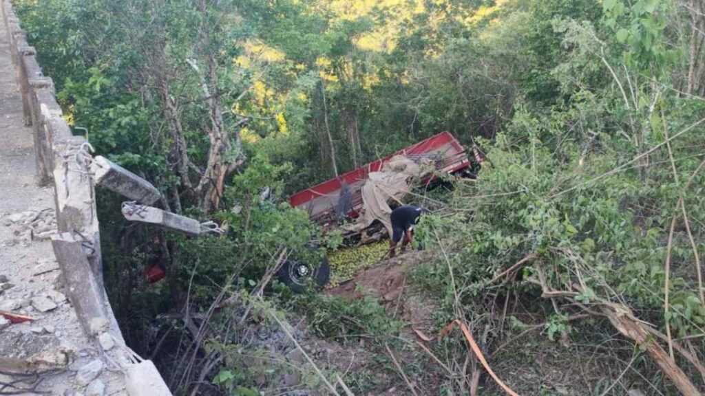 Após o impacto, o motorista do caminhão tentou desviar para evitar uma colisão frontal com outro veículo de carga que vinha no sentido contrário. Durante a manobra evasiva, o caminhão acabou saindo da pista e descendo uma ribanceira.