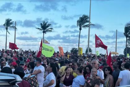 Manifestação saiu da Praia da Cinelândia e seguiu pela Orla da Atalaia, com palavras de…