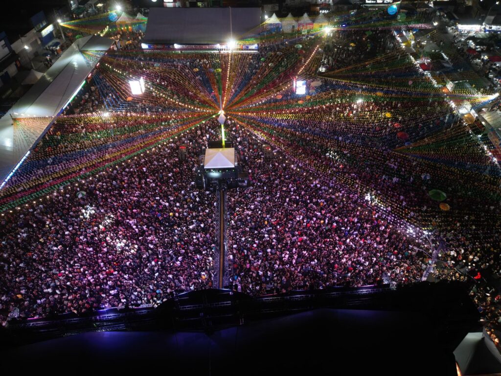 Um dos momentos mais aguardados desta primeira noite nos palcos principais do festival, João Gomes, fez jus às expectativas ao misturar seus hits do piseiro, interpretações de clássicos da música de Vaquejada, do Forró Pé-de-Serra e ainda sons do seu projeto mais recente, o “Dominguinho”, que gravou junto a Mestrinho e Jota.Pê. O resultado foi uma explosão de alegria no público.