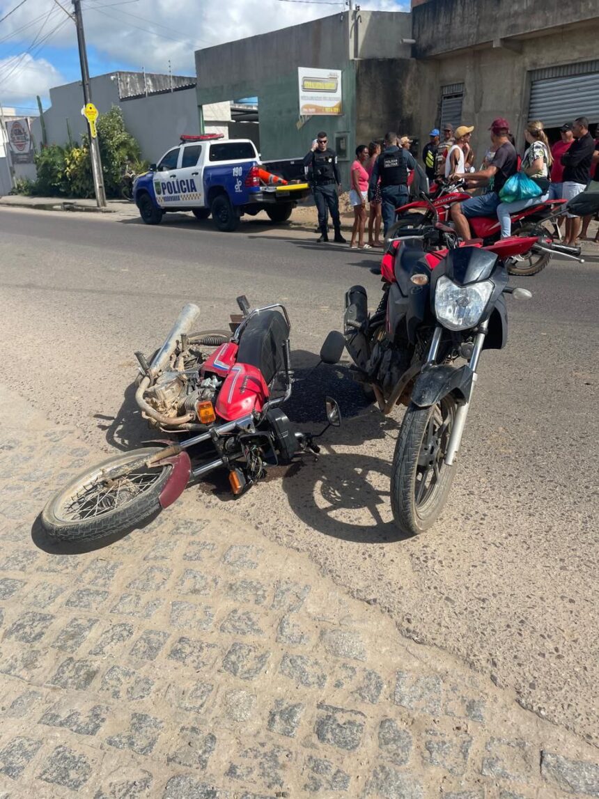Na manhã deste sábado (16), um acidente de trânsito foi registrado na Rodovia SE-361, próximo ao grupo escolar RECA, no município de Simão Dias. A colisão transversal envolveu duas motocicletas e deixou um dos condutores ferido.