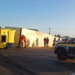 Capotamento de caminhão espalha carga na pista e mobiliza bombeiros e SAMU em Indiaroba