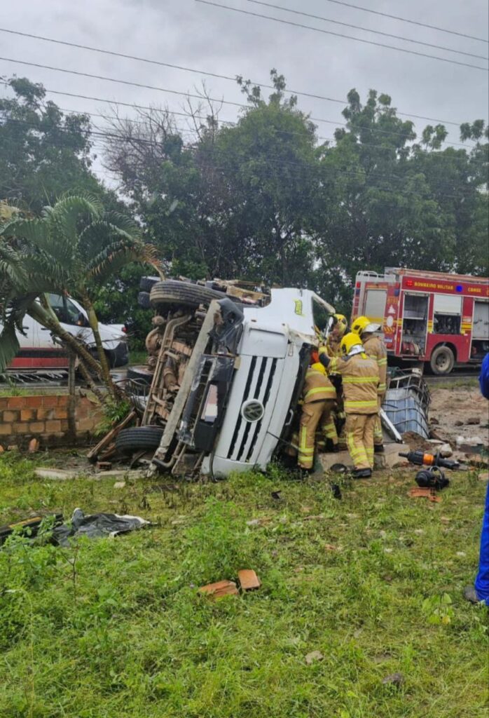 O caminhão, modelo VW/13.180 de cor branca, era conduzido por um homem de 38 anos, que ficou ferido e preso às ferragens. O resgate foi realizado por equipes do Corpo de Bombeiros Militar, com o apoio do Serviço de Atendimento Móvel de Urgência (SAMU), que prestou os primeiros socorros e encaminhou o motorista ao hospital. A vítima foi hospitalizada, mas não há informações sobre seu estado de saúde.